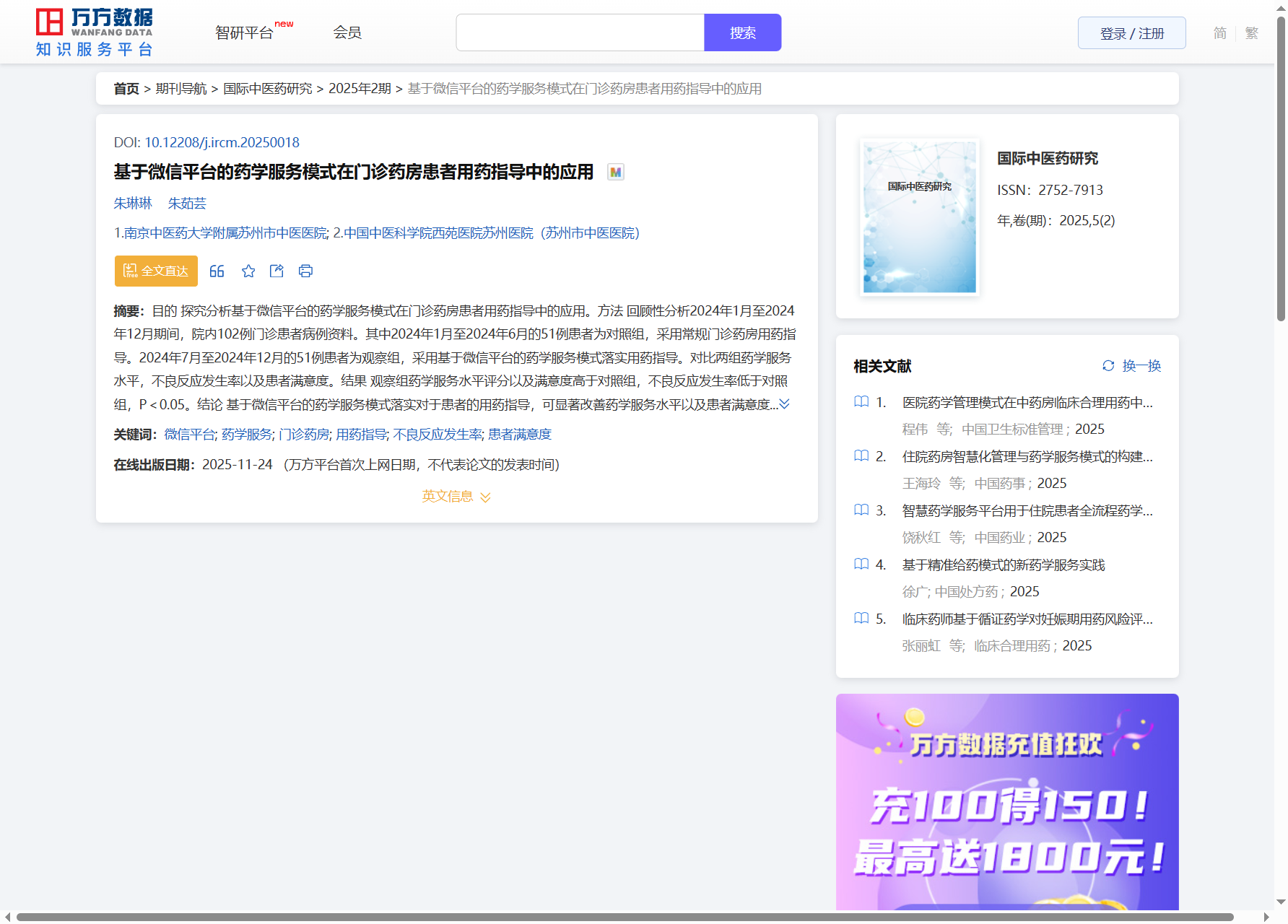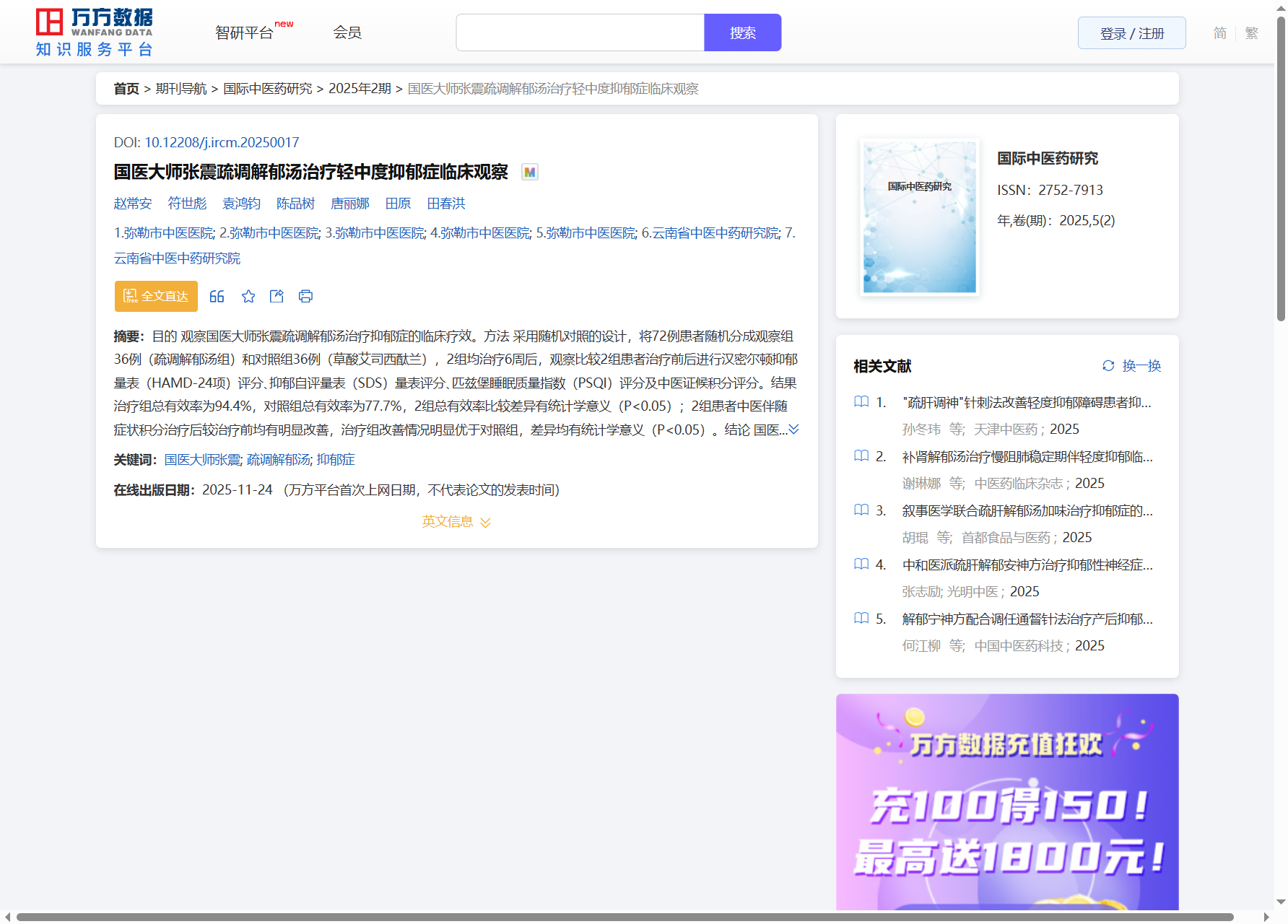 International Research in Chinese Medicine. 2025 Vol. 5(2) : 20-23. 2025-06-27