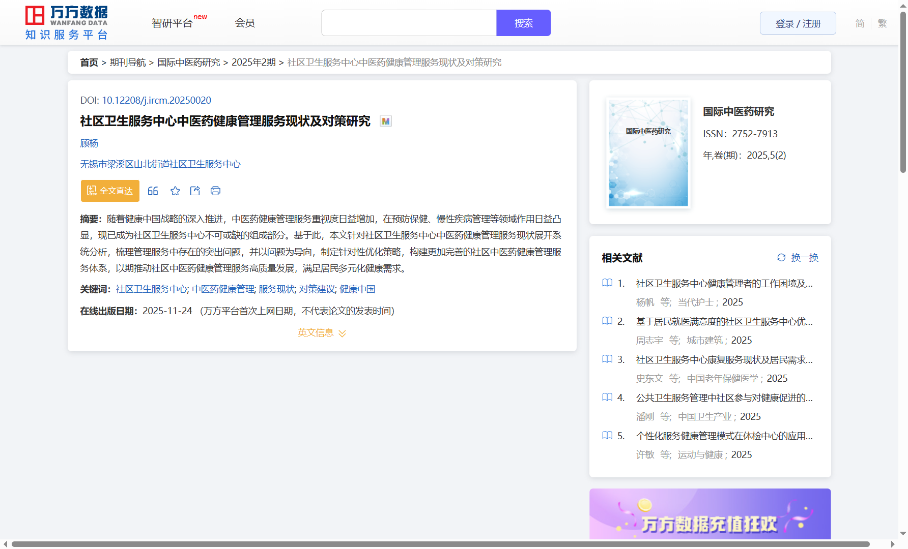 浏览量:313 全文下载:【PDF】 万方数据(WANFANG DATA)